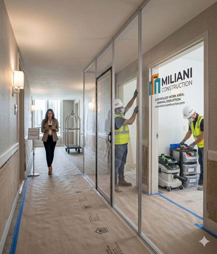 Miliani Construction is a specialized hospitality contractor focused on hotel renovations, PIP execution, and occupied construction. We are not a generalist contractor—we are built for projects that require precision, coordination, and operational continuity.